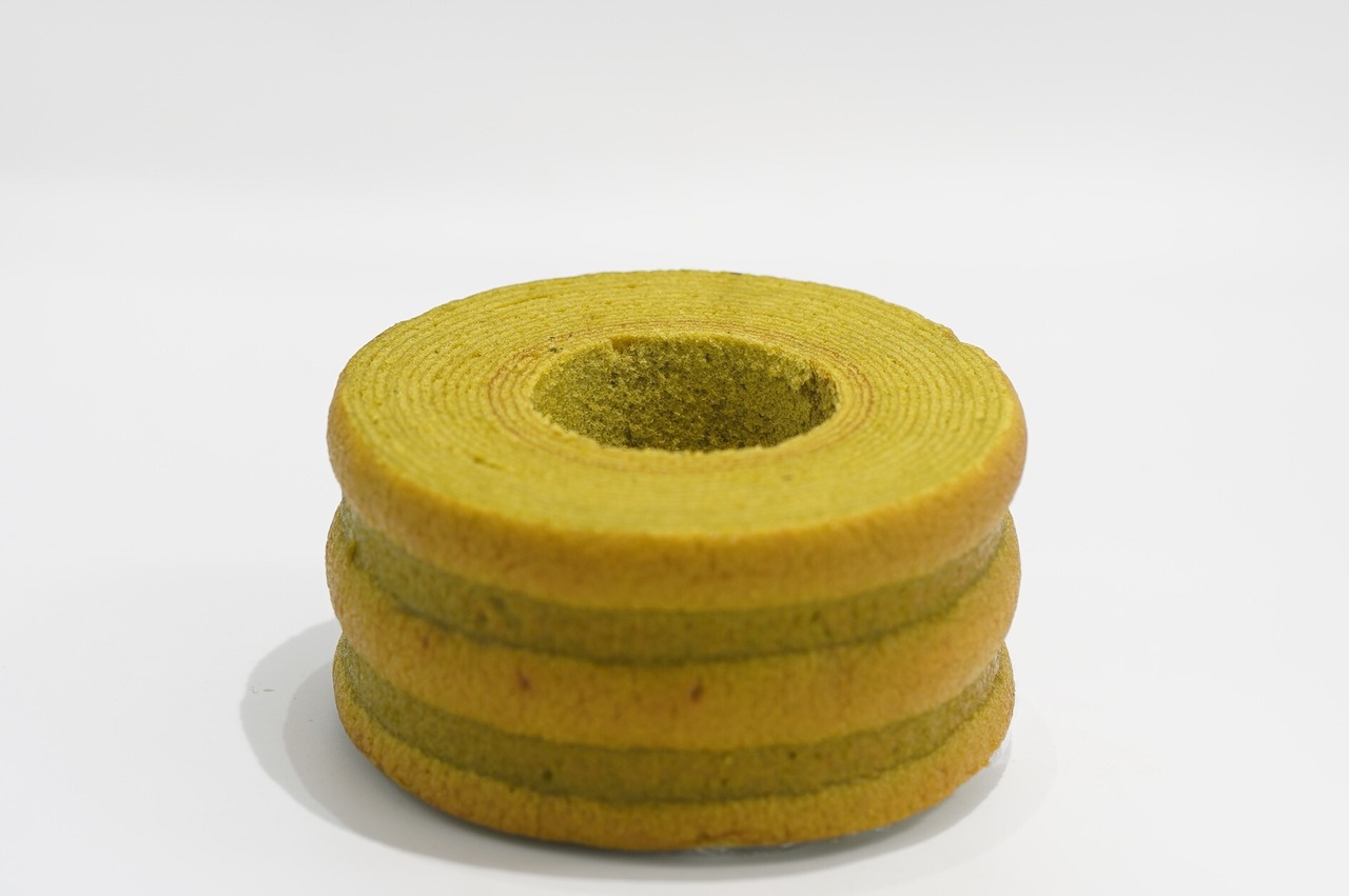 抹茶の風味としっとりとした食感の米粉バウムクーヘンのほんのりやさしい甘さが絶妙に調和し、特別なティータイムを演出します。